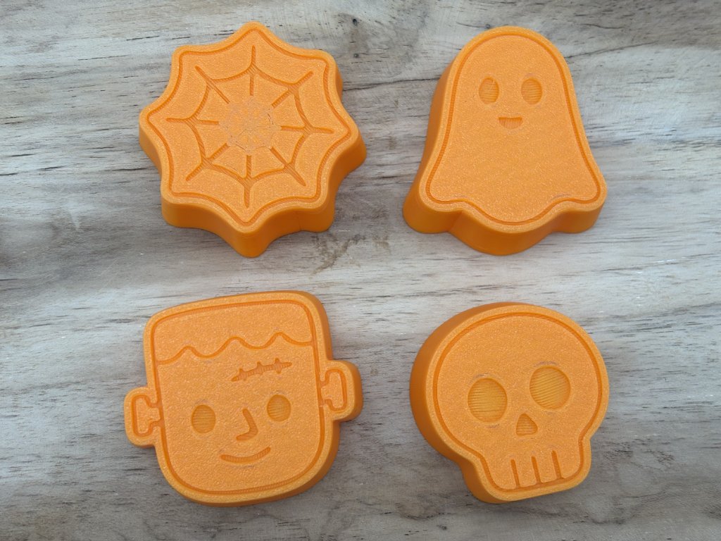 V sadě najdete ikonické tvary: Frankenstein, lebku, ducha a pavučinu – přesně to pravé pro malé milovníky strašidel.