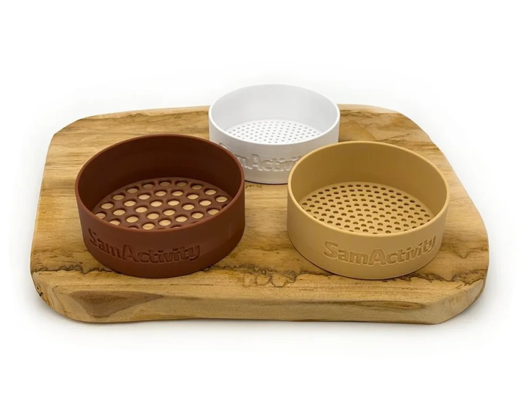 Třídicí síta na sypký materiál jsou ideálním pomocníkem pro senzorické hry, třídění přírodnin i jemnou motoriku dětí. Snadno oddělíte písek, rýži, cizrnu, těstoviny, čočku nebo drobné kamínky podle velikosti.