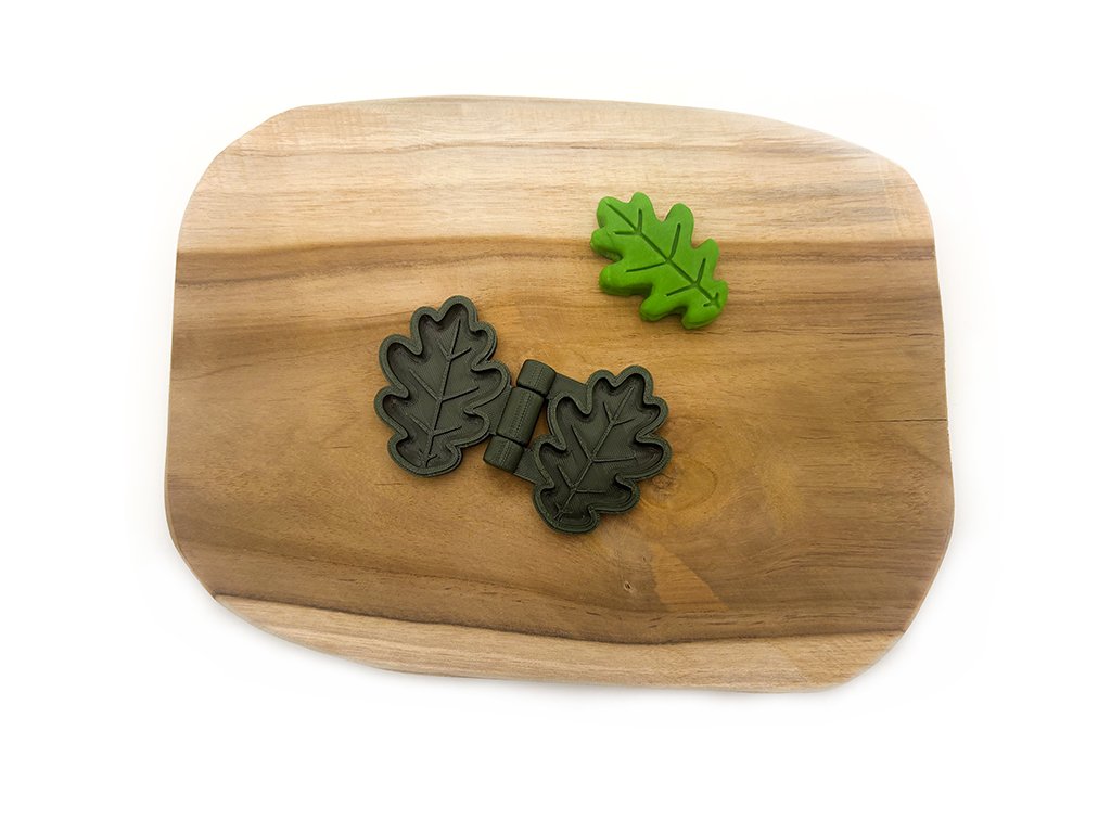 Vytvořte si z modelíny, kinetického písku nebo jiného materiálu dubový list. Tvořítka jsou ideální pomůckou k sensory play hraní a s našimi tácy lze vytvořit krásné podzimní téma.